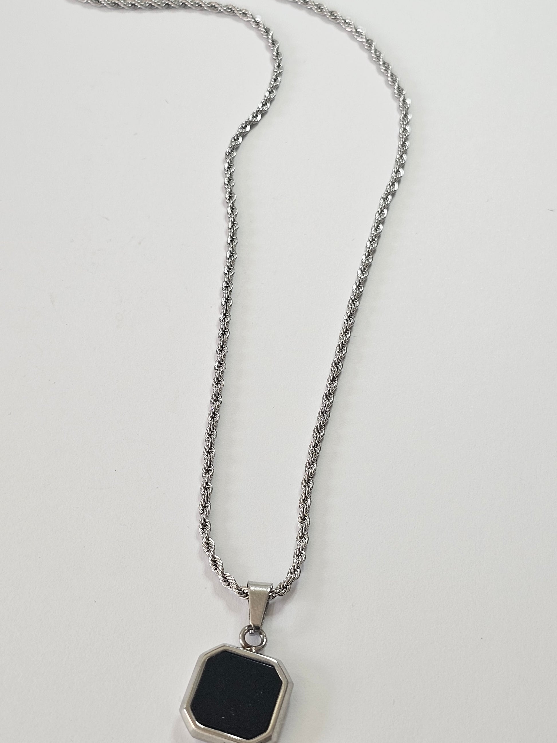 El collar Onyx Guardian es un símbolo de protección y fuerza. Con el ónix, la piedra de la resistencia, y la plata de ley 925, este diseño único está creado para hombres que enfrentan la vida con coraje y determinación.